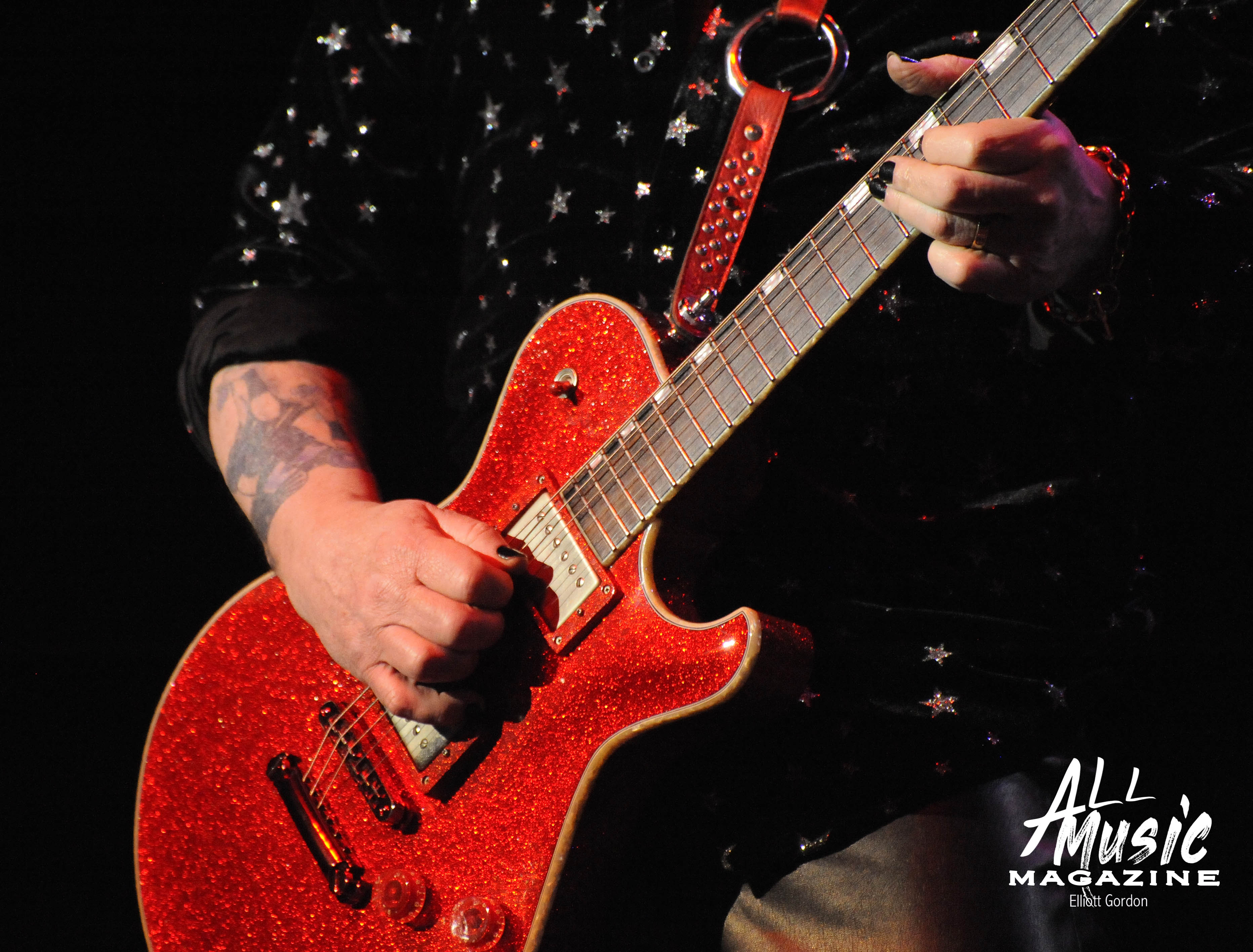 As the show started, my immediate observation was that the band’s production was not anchored in large video screens, pyrotechnics or other visual distractions, instead leaving Idol’s adoring fans the ability to just focus in on enjoying his trademark sneers and punk rock poses. As the band rolled early into fan-favorites “Cradle of Love” and “Flesh for Fantasy,” Idol strutted back and forth across the stage, engaging the floor and balcony multi-generational attendees with smiles, finger-pointing and fist pumping. Even at 67-years-old, Idol still oozed rock-n-roll rebelliousness.