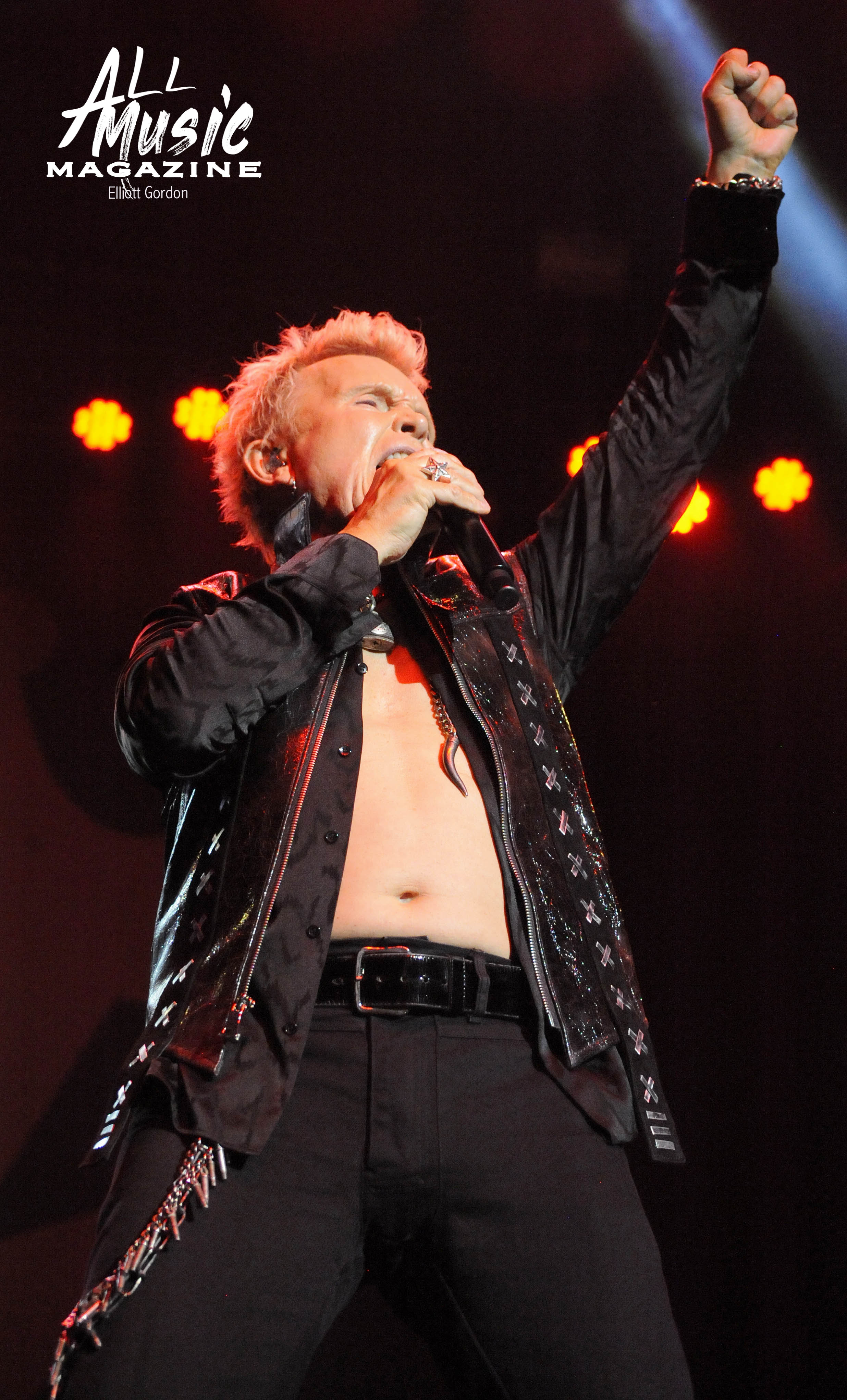 Following a 30-minute stage prep, the venue lights dimmed across the sold out crowd at 9pm to the audience’s screaming delight. Under the cover of blue lights and smoke, Stevens, along with Stephen McGrath (bass), Billy Morrison (guitar), Erik Eldenius (drums), and Paul Trudeau (keyboards), took their spots prior to the iconic Idol commanding the spotlight to lead the band into the opening tune of the night, “Dancing with Myself.”