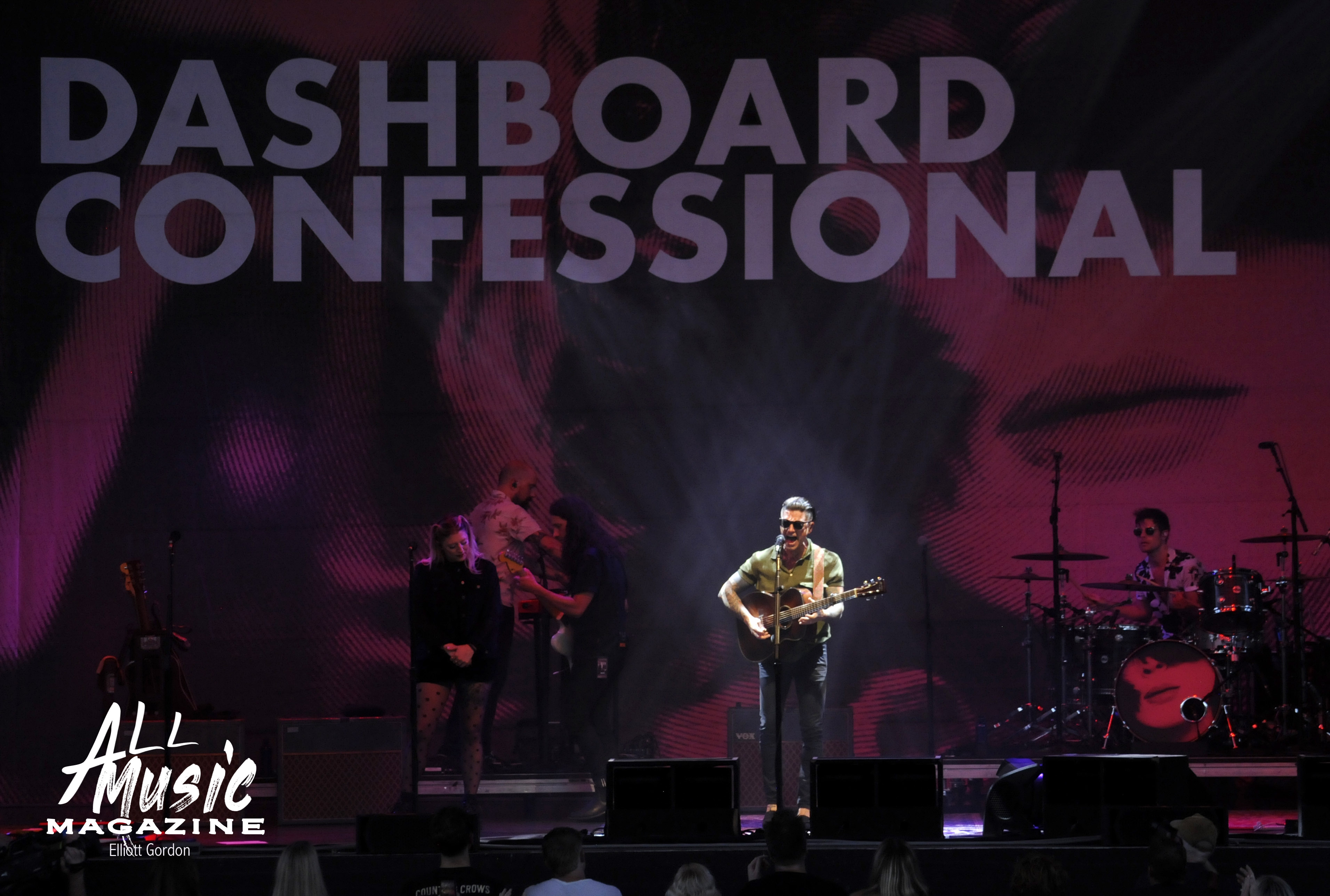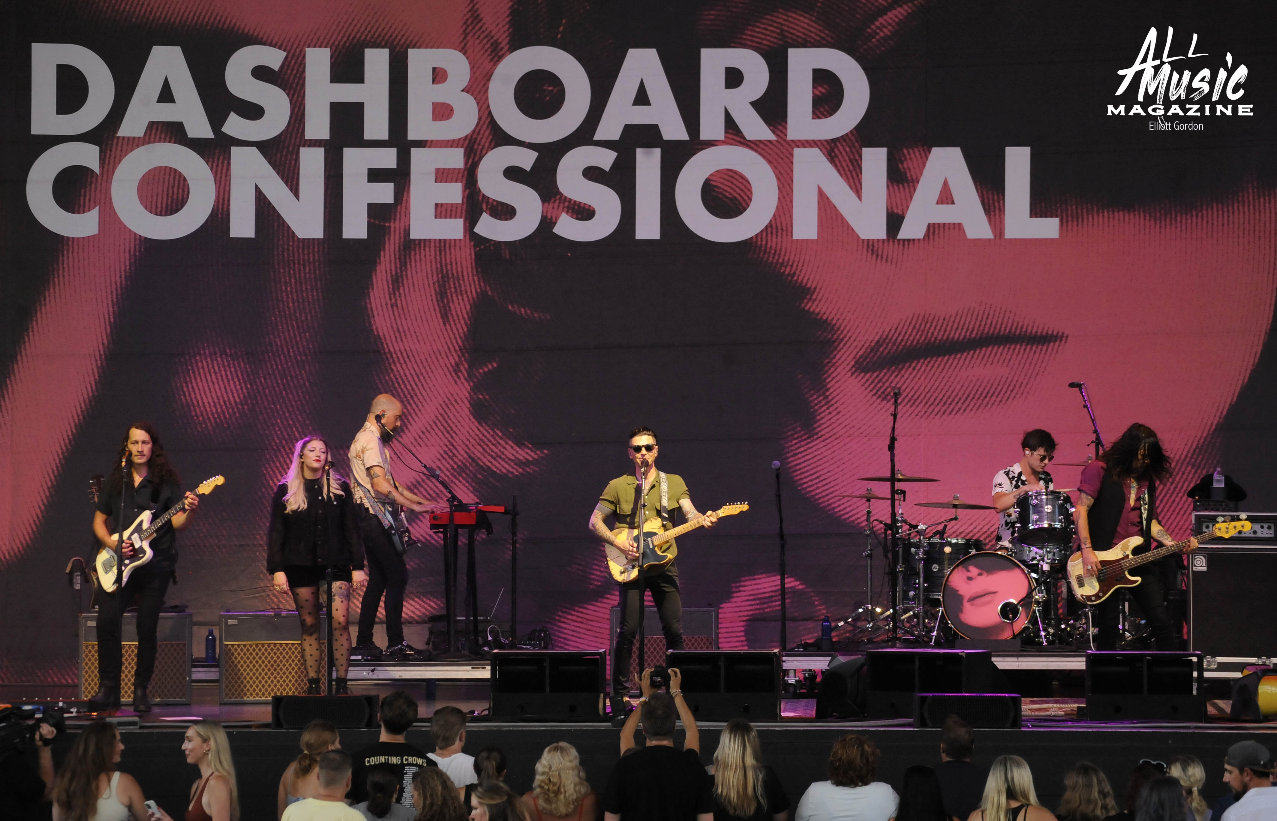 With the sun mercifully beginning to set around 7:30pm, Counting Crows frontman Adam Duritz came out and introduced Dashboard Confessional to the early crowd. Lead by the charismatic Chris Carrabba, Dashboard Confessional kicked off the night with “Don’t Wait” from their 2006 release, Dusk and Summer. The energetic Carrabba, flanked by Scott Schoenbeck, Armon Jay, Chris Kamrada, Kenny Bridges, and Abigail Kelly (who returned to performing after missing the prior week of shows for unannounced reasons), delivered a 12-song set that pulled from all eight of their studio albums, including their most recent, All the Truth That I Can Tell (2022).