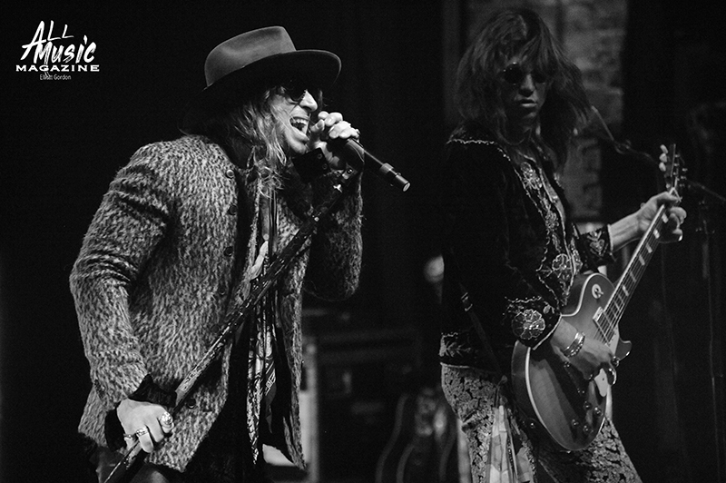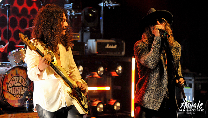 Following a 30-minute equipment turn, the large Dirty Honey logo hung above Jaydon Bean’s drum riser was lit up shortly after 9:00pm as the venue lights went dark. With Bean taking his place behind his kit, John Notto (guitar), Justin Smolian (bass), and singer Marc LaBelle took to the stage and kicked off their night with the title track from their latest album release, “Can’t Find the Brakes.” LaBelle, donning his signature black hat and shades, engaged with the crowd pressed up against the stage, many of which I noticed were already sporting Dirty Honey t-shirts when they came through the doors earlier in the night.