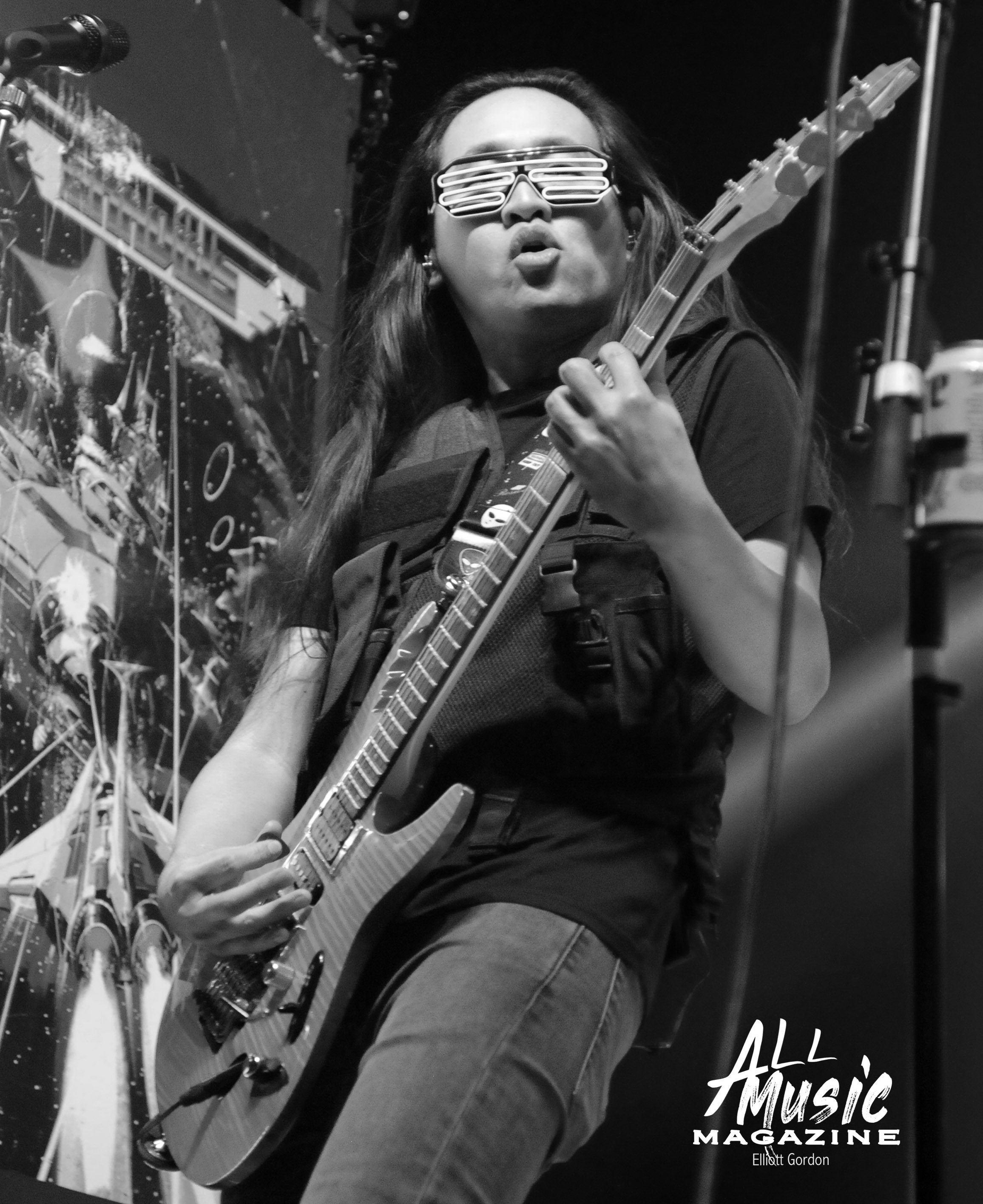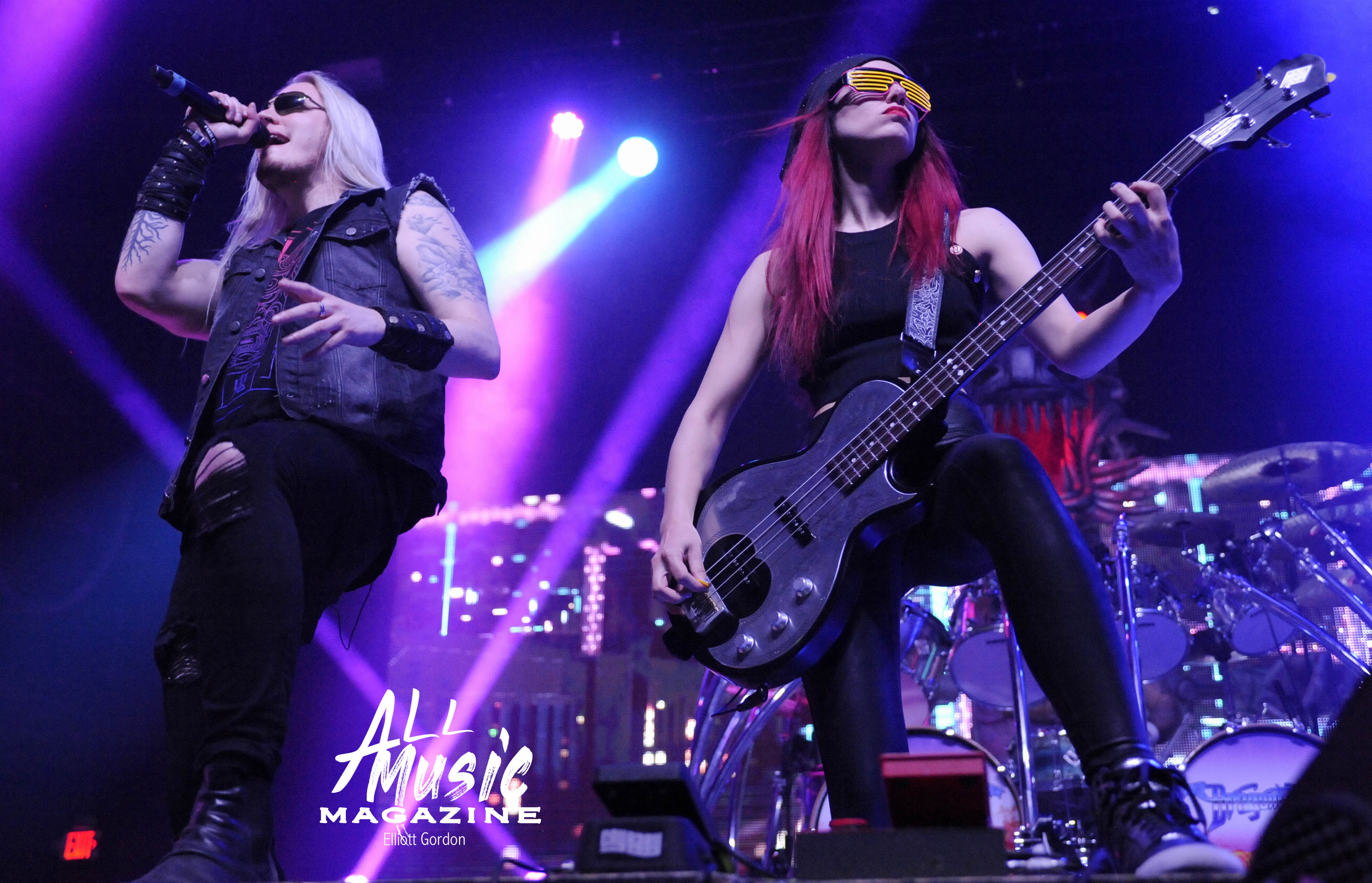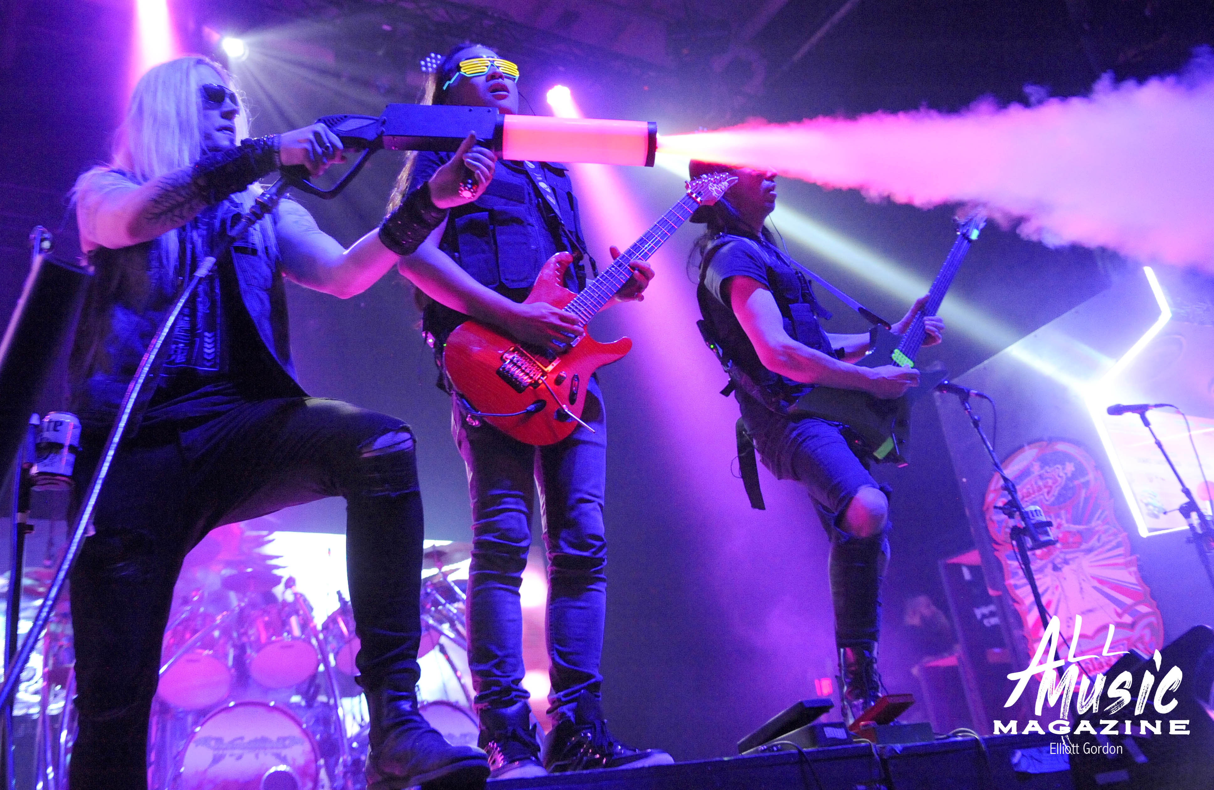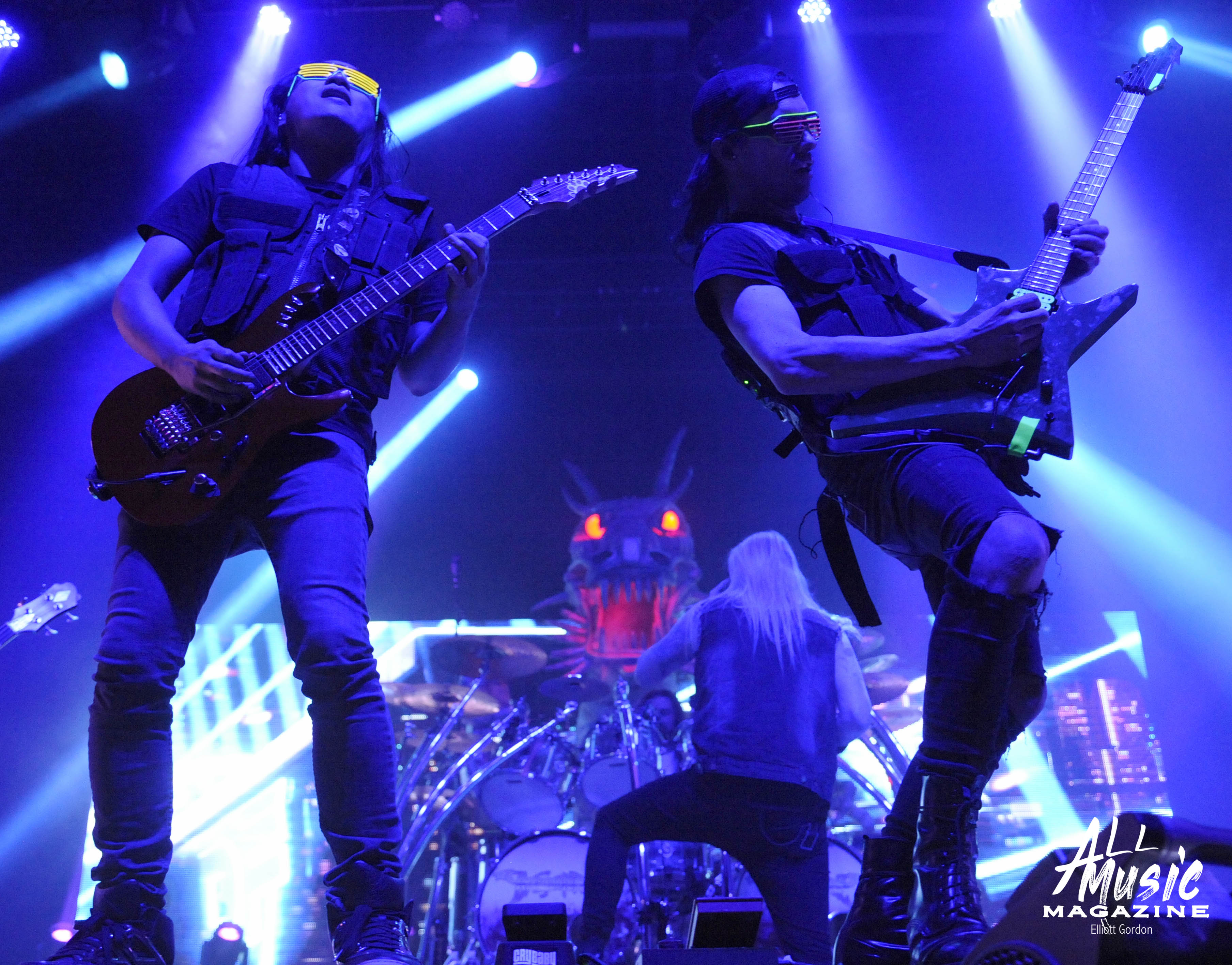 Similar to the show my All Music Magazine colleague Terrell Stewart covered in Denver last month, DragonForce launched into “Highway to Oblivion” from their 2019 album, Extreme Power Metal. As you can see from the photos below, guitarists Herman Li and Sam Totman, along with bassist Alicia Vigil, all wore light-up vented classes as the shredding began.