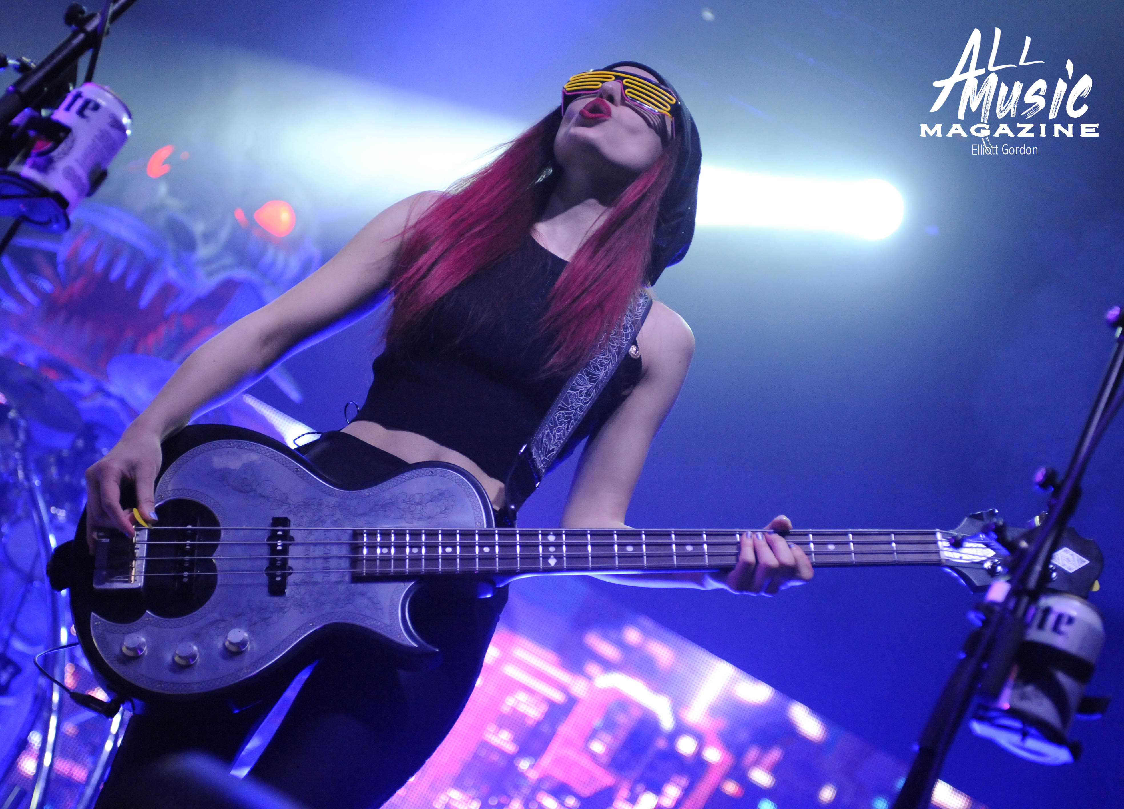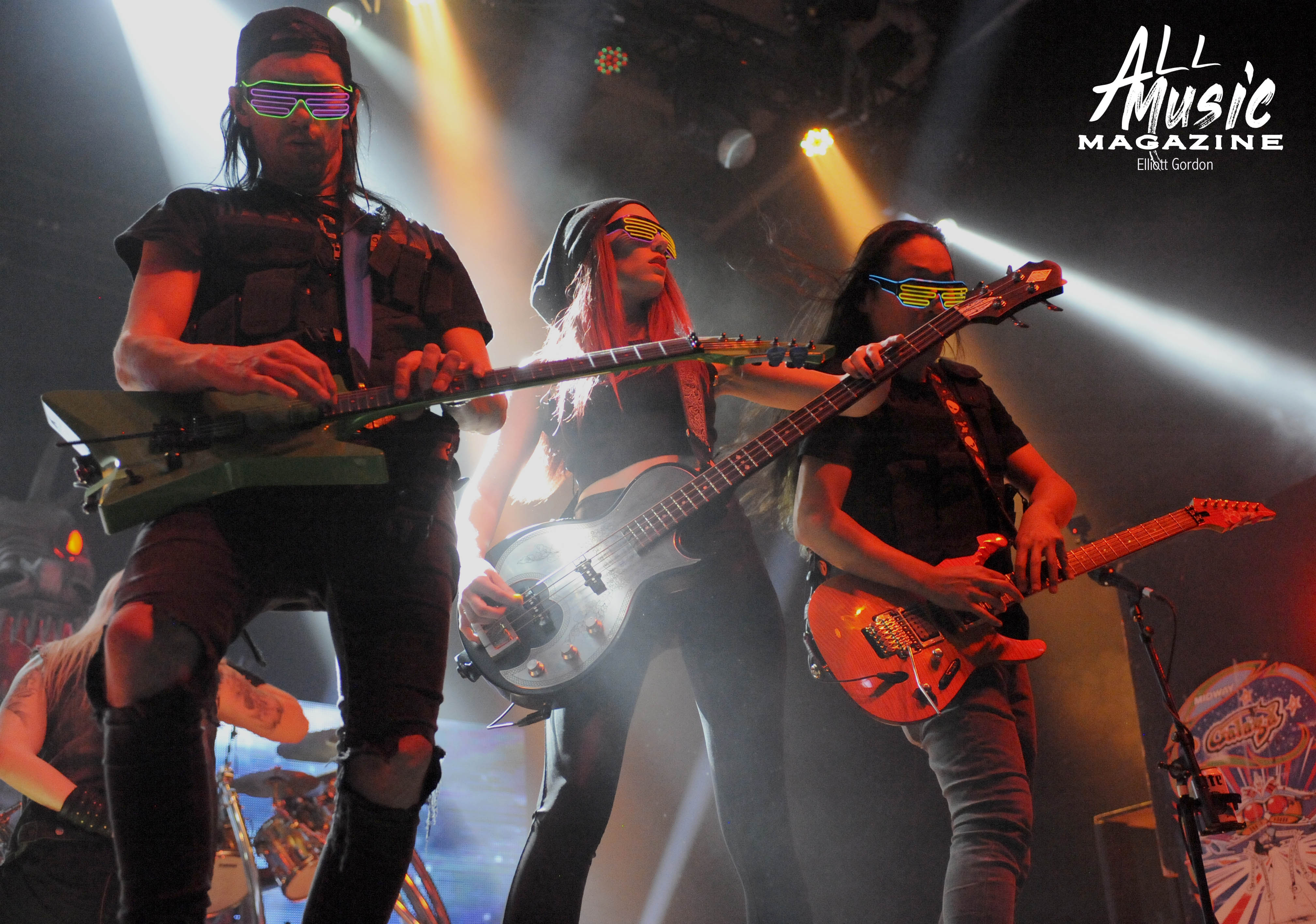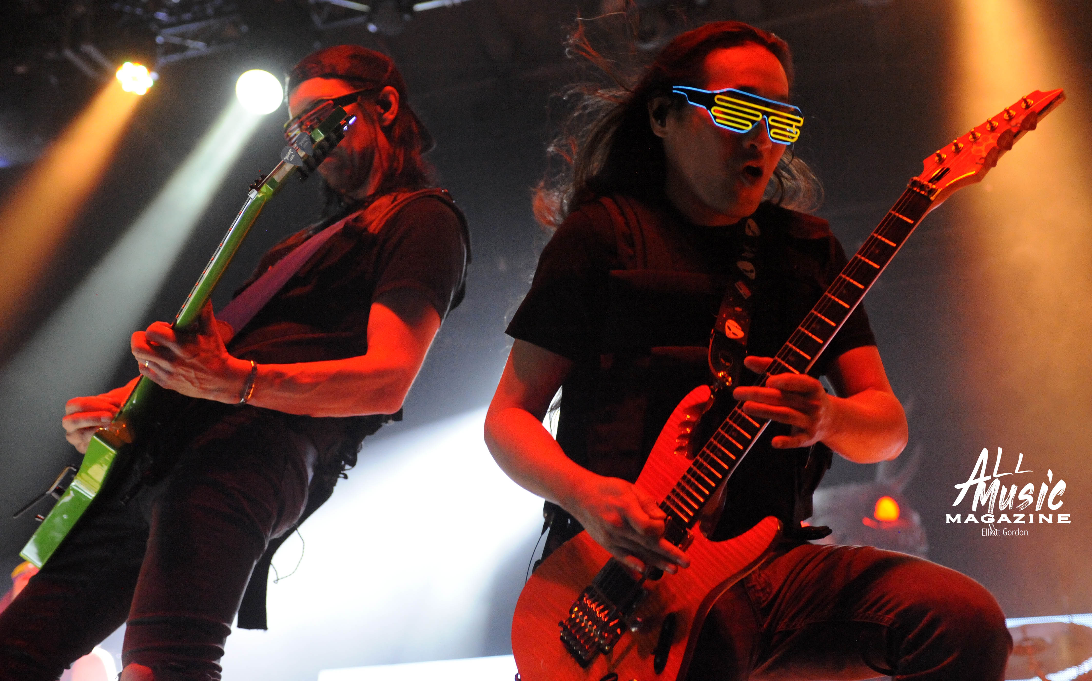 Similar to the show my All Music Magazine colleague Terrell Stewart covered in Denver last month, DragonForce launched into “Highway to Oblivion” from their 2019 album, Extreme Power Metal. As you can see from the photos below, guitarists Herman Li and Sam Totman, along with bassist Alicia Vigil, all wore light-up vented classes as the shredding began.