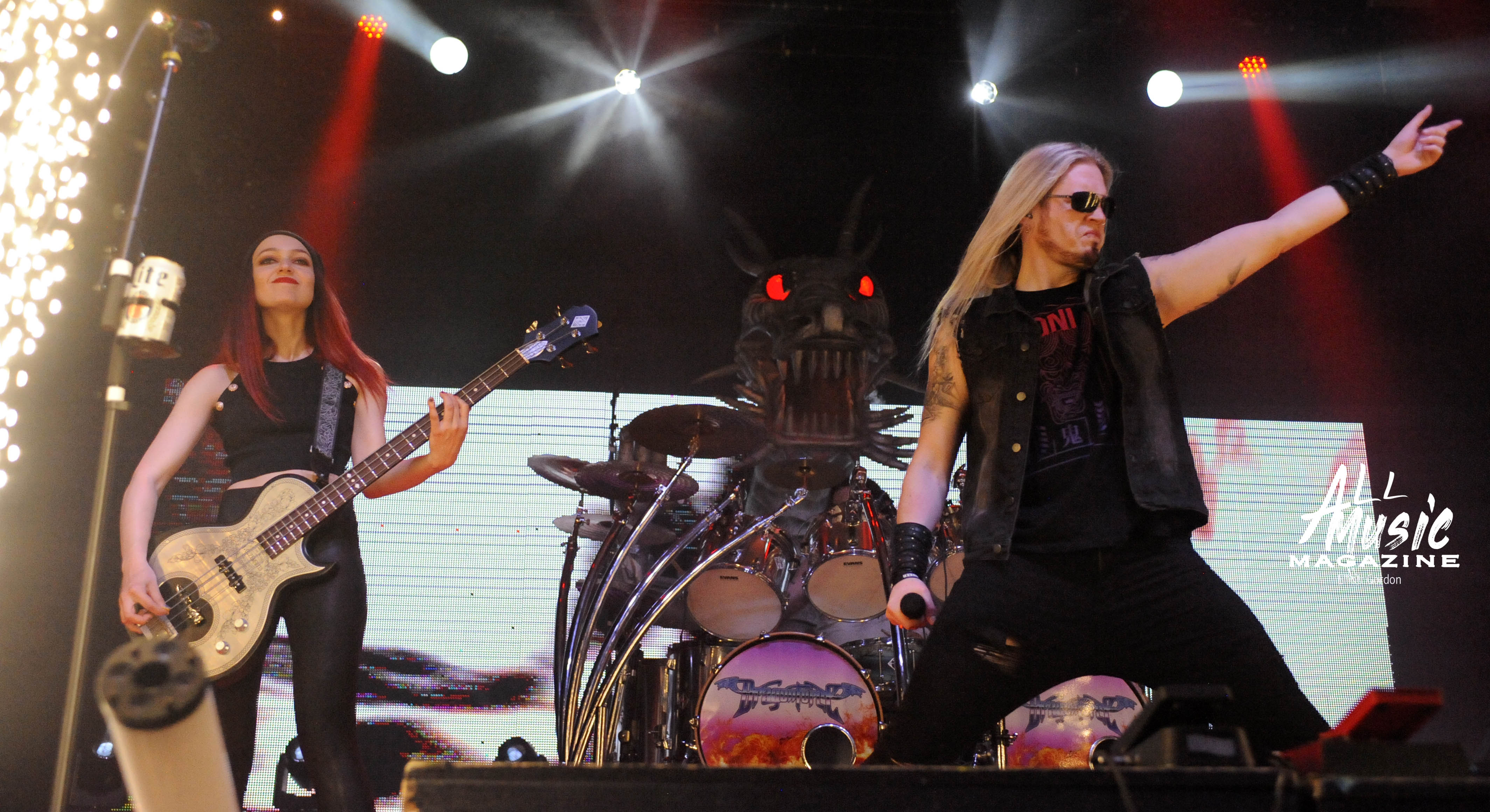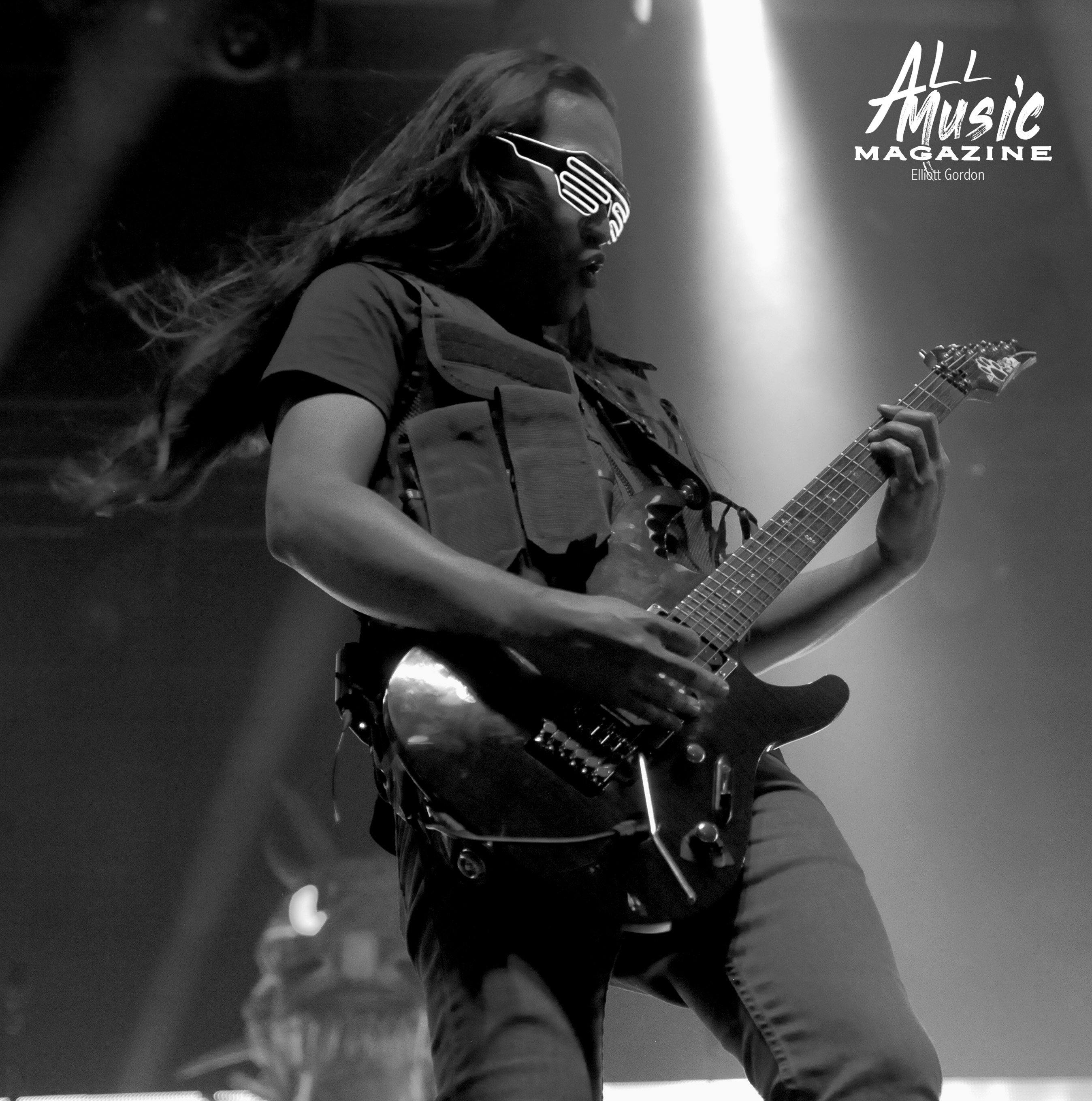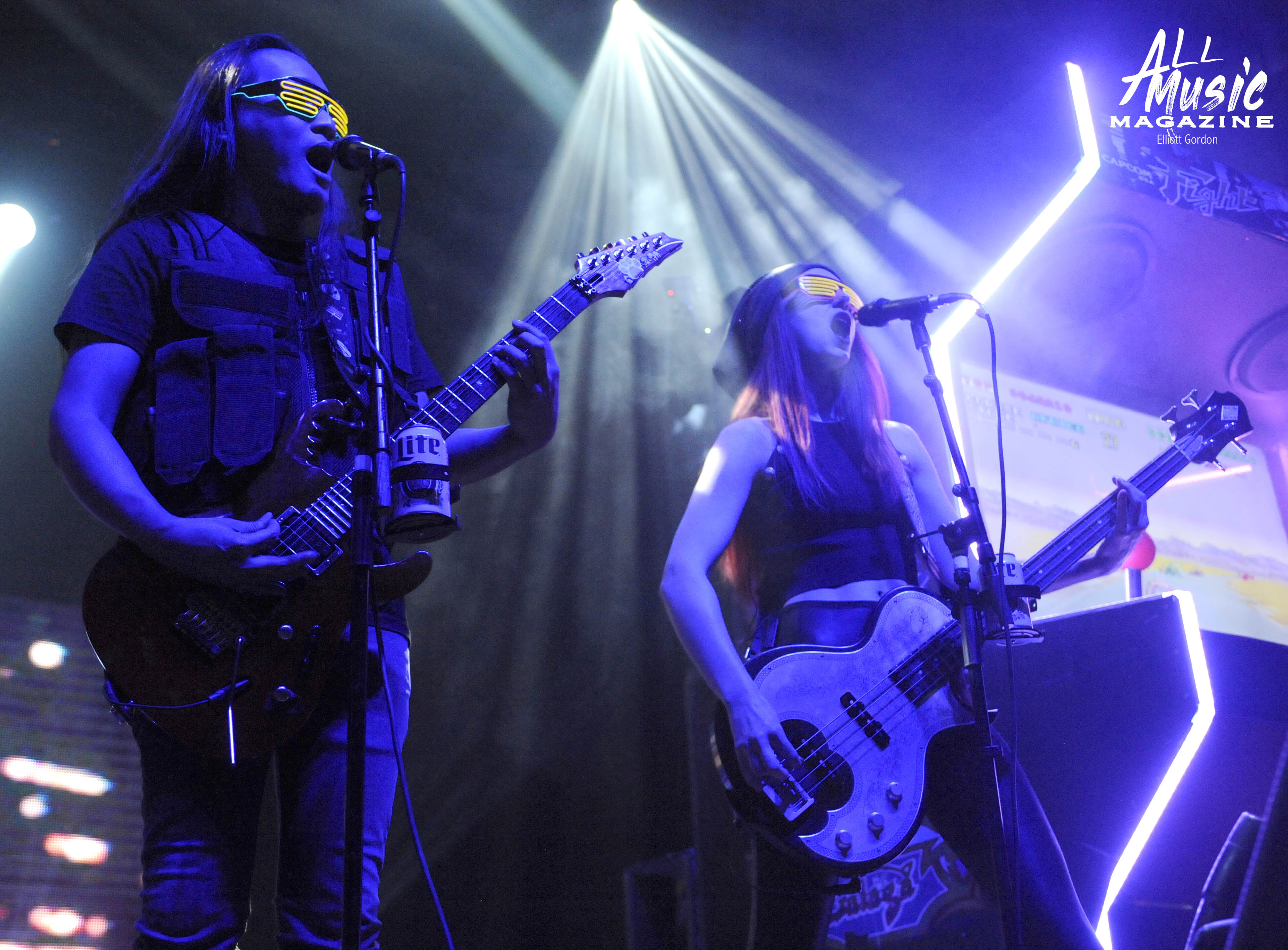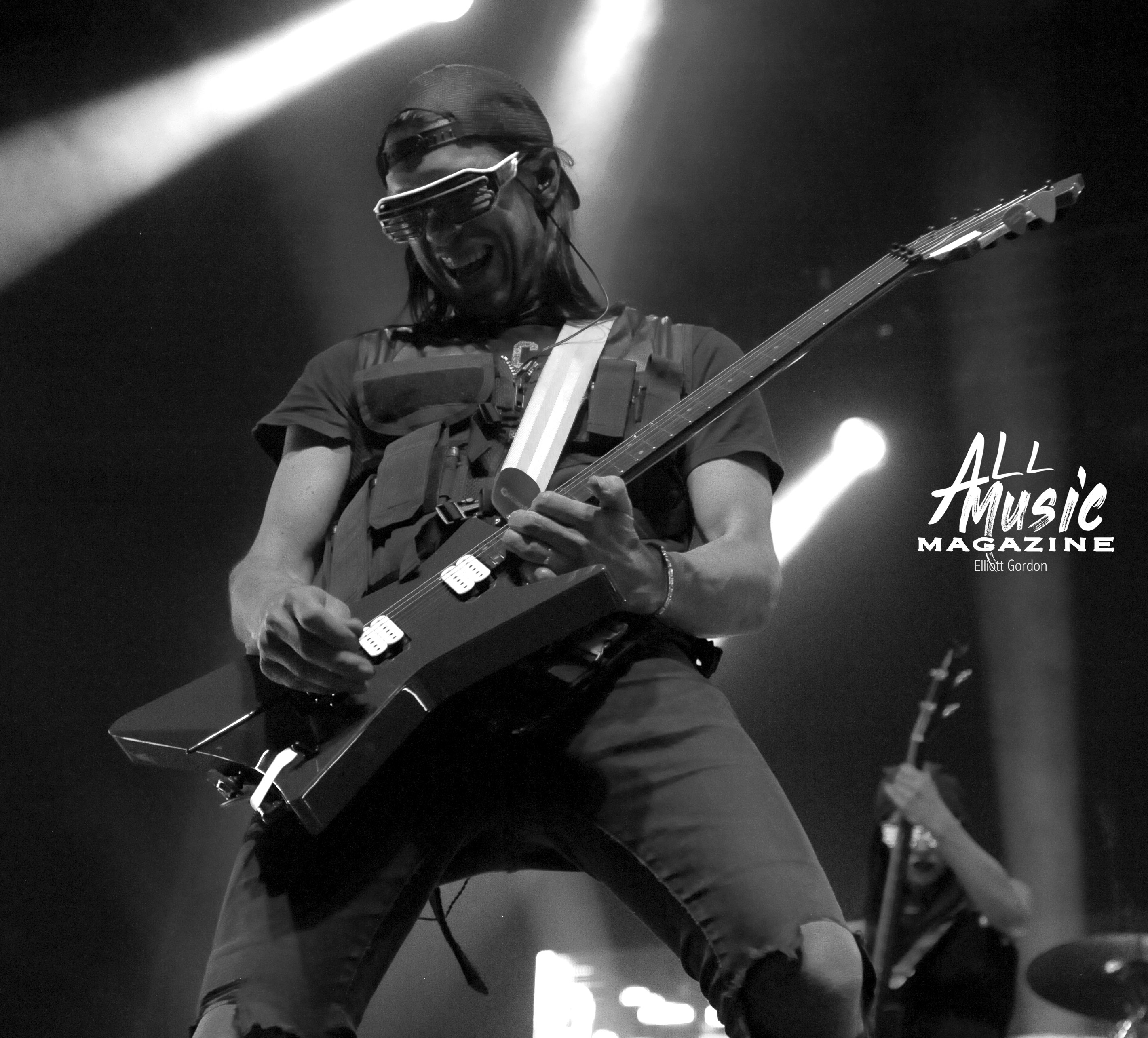 Similar to the show my All Music Magazine colleague Terrell Stewart covered in Denver last month, DragonForce launched into “Highway to Oblivion” from their 2019 album, Extreme Power Metal. As you can see from the photos below, guitarists Herman Li and Sam Totman, along with bassist Alicia Vigil, all wore light-up vented classes as the shredding began.