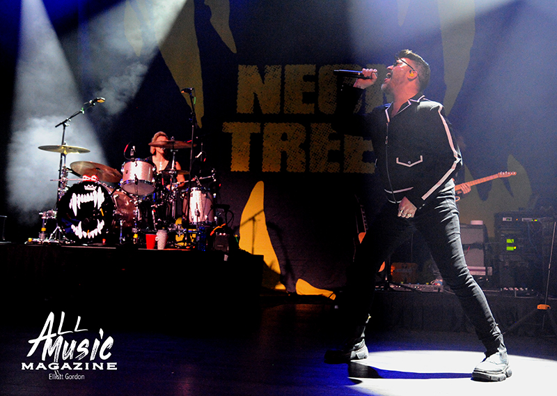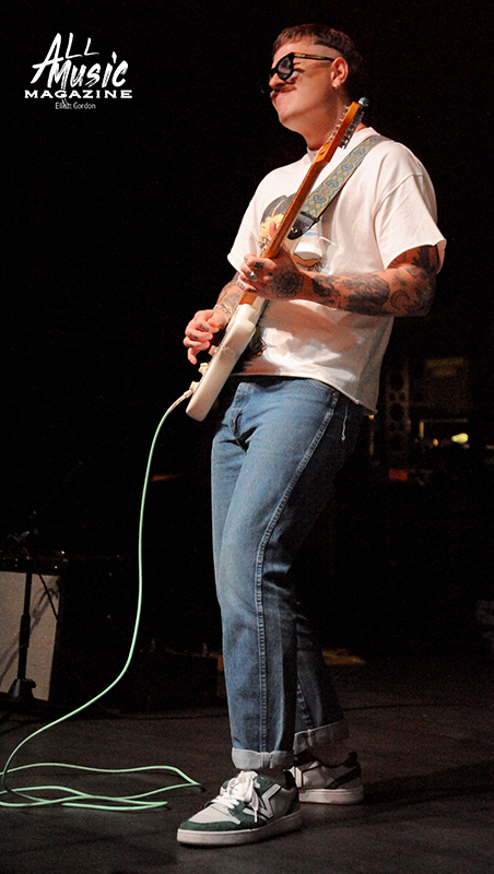 That being said, the band’s dedicated fan base did press forward and fill in the general admission audience space in front of the stage as soon as Neon Trees kicked off their set with “Losing My Head,” a track pulled from their most recent release and fifth studio album, Sink Your Teeth (June 2024). Lead out by charismatic lead vocalist Tyler Glenn, the core Neon Trees lineup continues to be rounded out by Chris Allen (guitars), Elaine Bradley (drums), and Branden Campbell (bass).