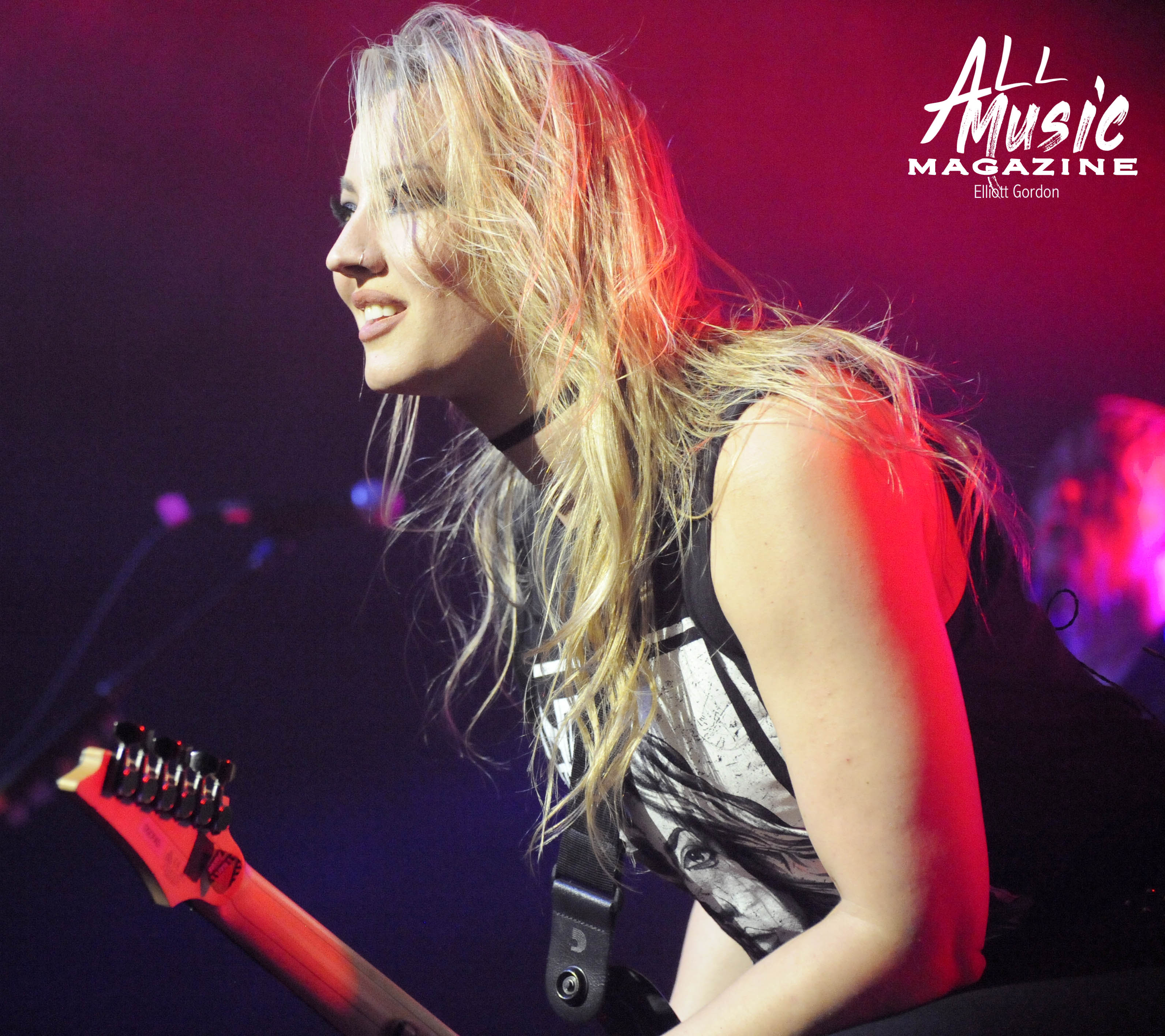 Having recently covered Strauss at her “day job” (as she puts it) with Alice Cooper at their stop in Jacksonville, Florida, on October 9, I can comfortably say that she rocked out as hard she could in the more intimate setting at The Masquerade as she did on the much larger stage of the Daily’s Place amphitheater. Strauss criss-crossed the stage with Dean regularly, making sure that everyone in attendance was able to get a good view of her playing. It is also worth mentioning that Villalta is a pure beast on the drums! He was a hammering animal behind the kit, and my son noticed that when Villalta handed out the sticks after the set, they were completely shredded into toothpicks.