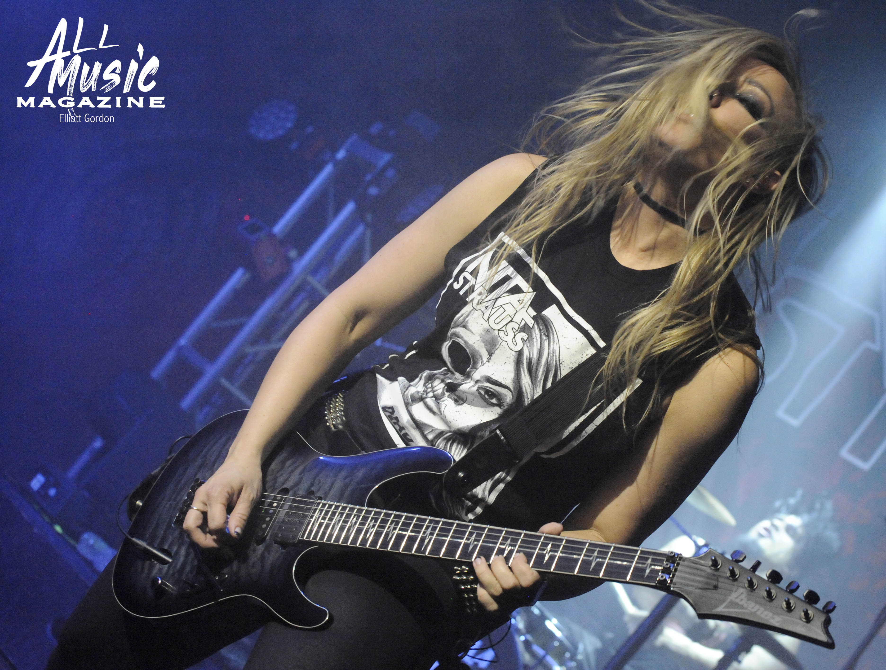 Fresh off the most recent Alice Cooper tour, guitarist Nita Strauss recently hit the road on her own solo “Winter Wasteland Tour,” stopping in downtown Atlanta, Georgia, on Thursday night. Established in 1989, The Masquerade is a bit of a unique venue experience, with three different indoor rooms handling a wide range of capacities, ironically named Heaven, Hell and Purgatory. Strauss even joked that she got “upgraded” from Purgatory, which is the room she played in when she last visited The Masquerade.