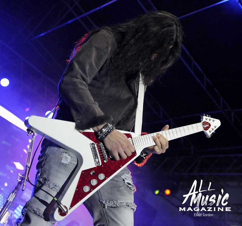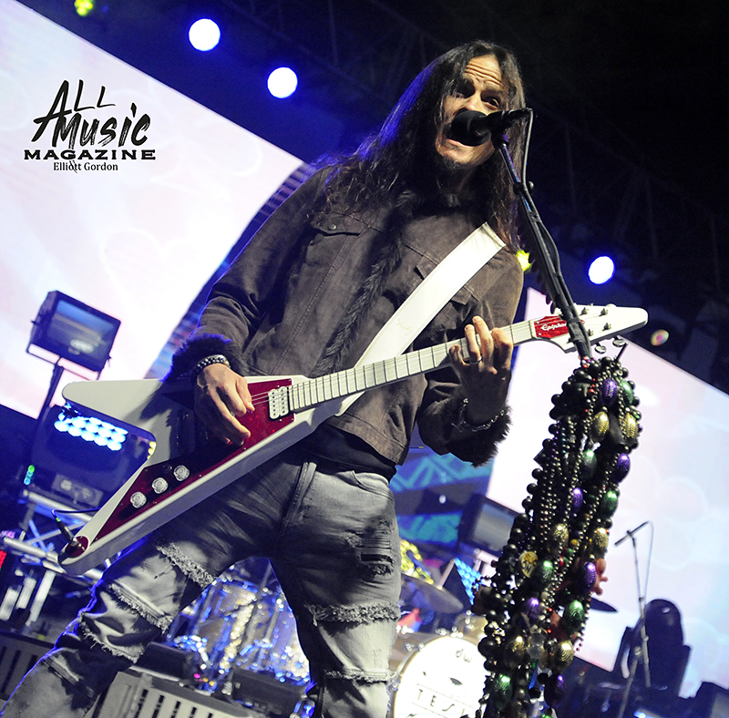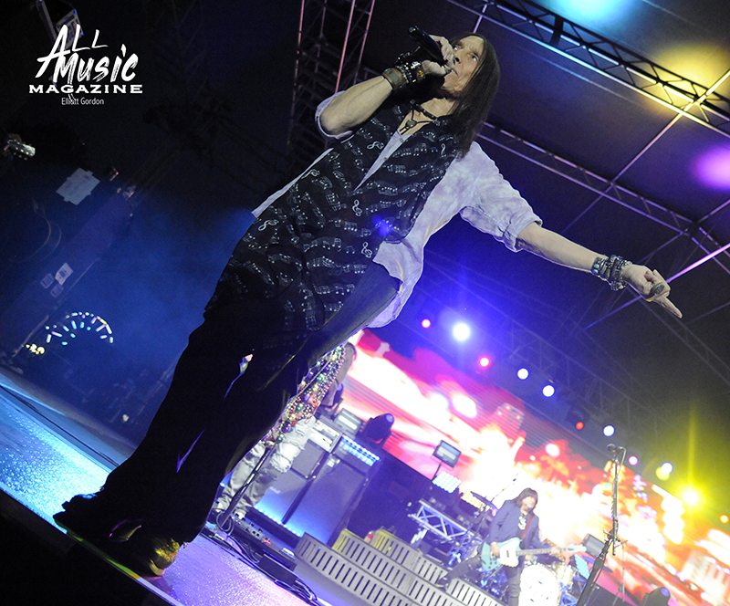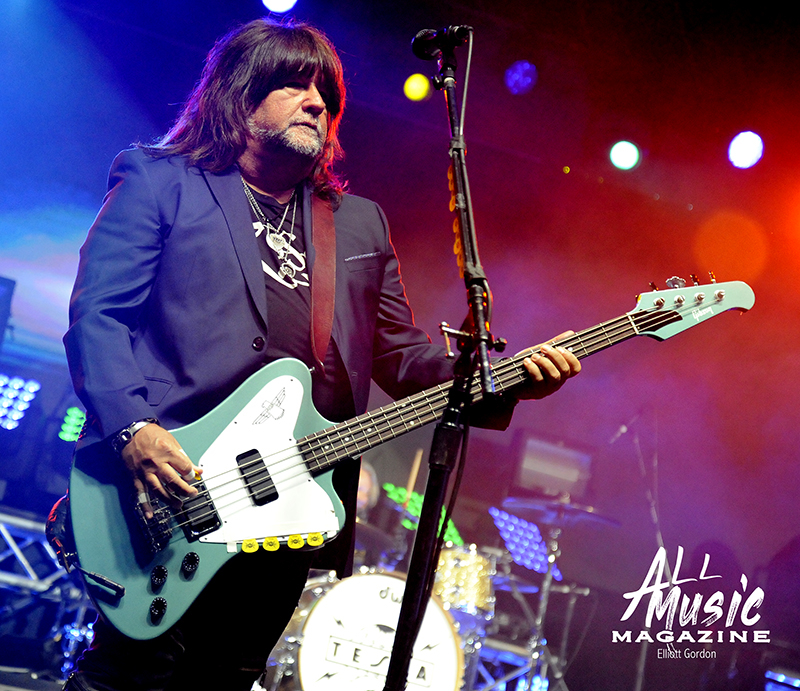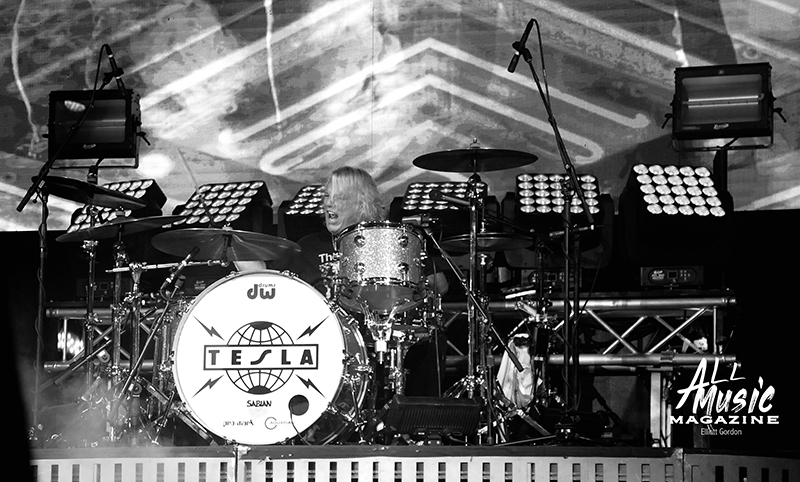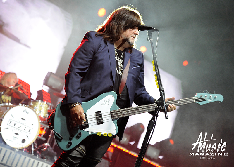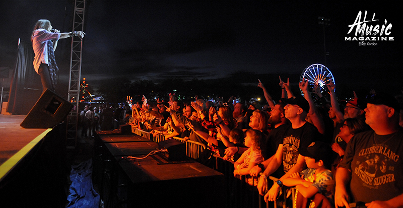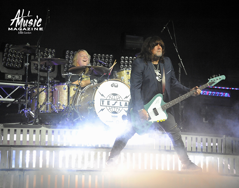 With the backdrop of Ferris wheels and funnel cake vendors, TESLA took to the outdoor stage at 7:30pm in front of a full field of fans, many of which staked out their spot early while enjoying the mild evening temperatures. Lead out by drummer Steve Brown, bandmates Frank Hannon (guitar), Brian Wheat (bass), and Dave Rude (guitar) then launched into “Lady Luck” from The Great Radio Controversy (1989) as Jeff Keith (vocals) appeared last before the screaming audience.