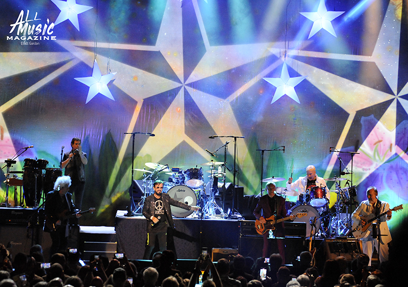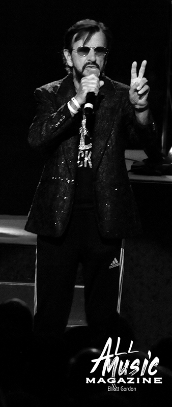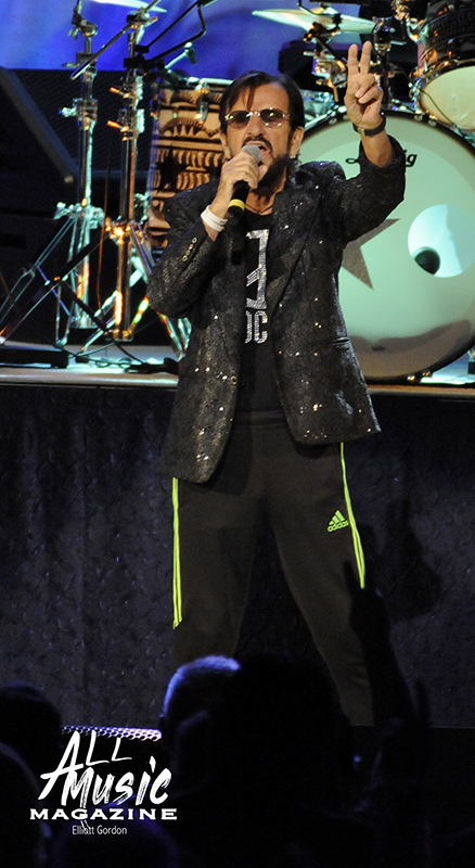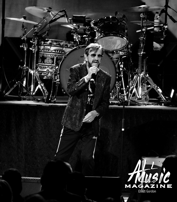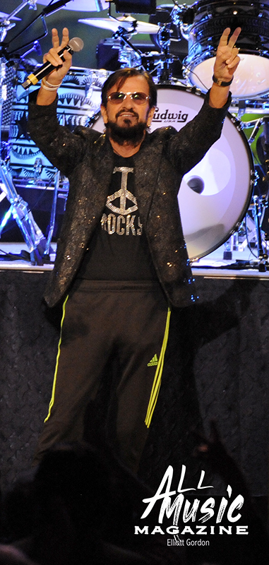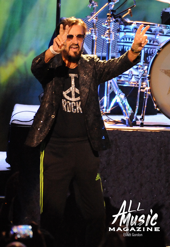 As the clock ticked towards 8:15pm, and with no opening act scheduled, the All Starr band took to the Fox stage and started their two-hour night off with a cover of “Matchbox,” the 1957 Carl Perkins tune. Band leader Ringo Starr, the iconic drummer and contributing singer/songwriter for The Beatles, appeared shortly thereafter with his signature peace signs up in the air to screaming audience adulation.